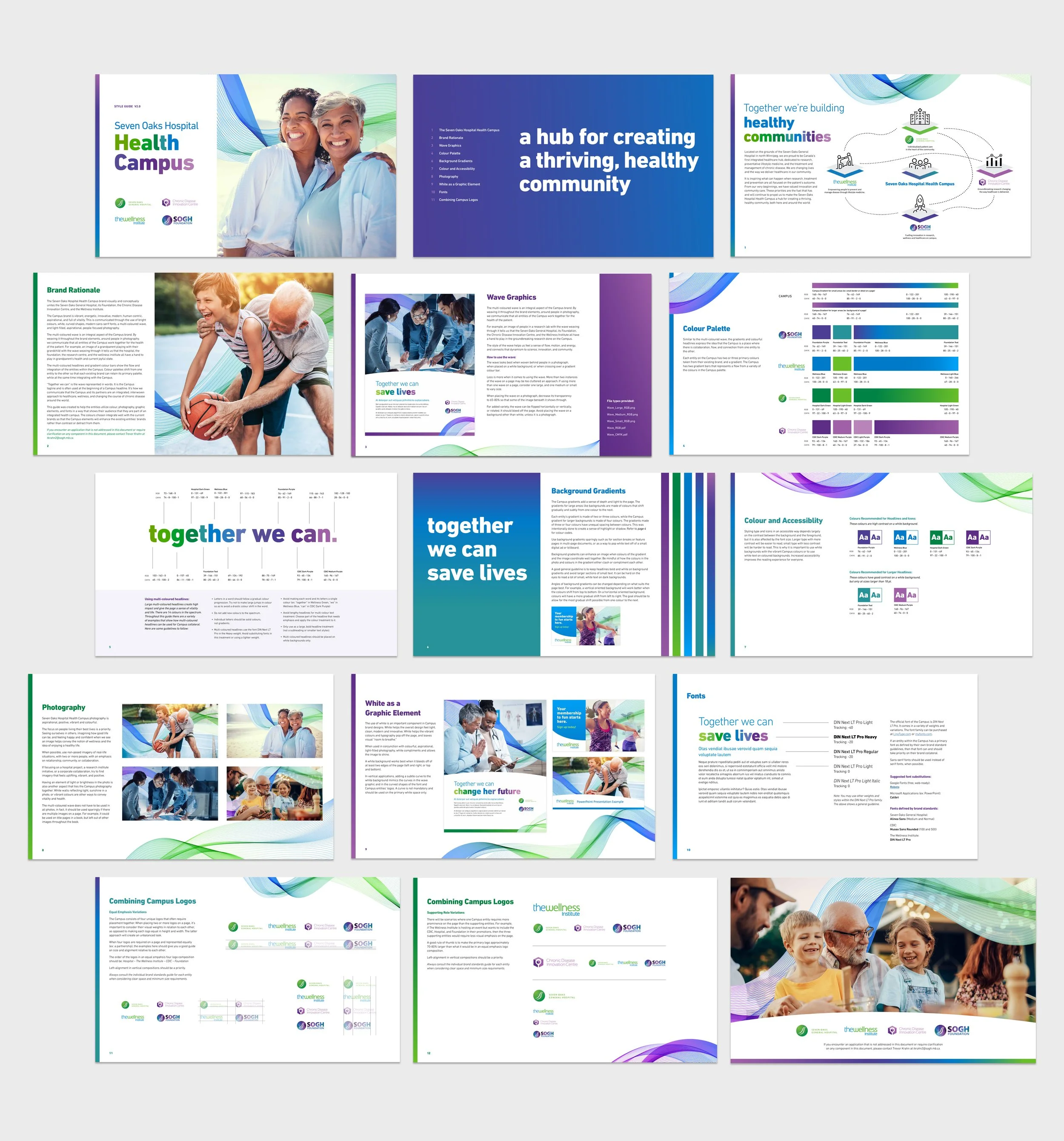 The Seven Oaks Hospital Health Campus is an incredible initiative in north Winnipeg, bringing together four different entities—The Wellness Institute, Seven Oaks General Hospital, The Seven Oaks Hospital Foundation, and the Chronic Disease Innovation Centre. The challenge, though, was that each of these organizations looked and felt separate, and the overall campus didn’t have a unified identity. Without a shared visual language, it was hard to see how these different parts were working together toward the same goal.